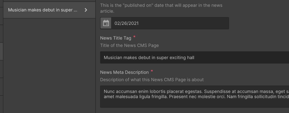 Title tags and meta descriptions for CMS pages are added through the CMS input. Make sure every item title tag and meta description is populated.