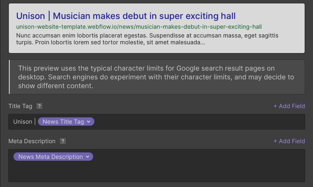 Aside from that, you can customize how title tags and meta descriptions appear via the CMS page specific settings.