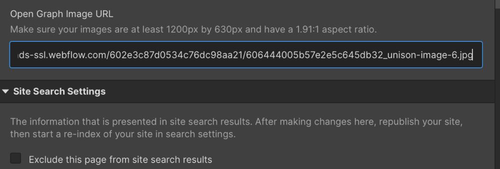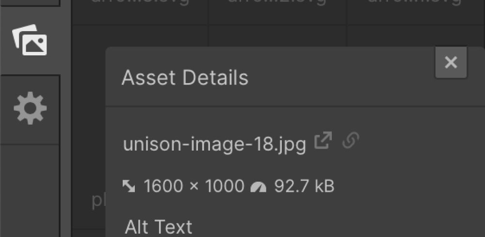 After images have been resized to 1200 x 630px (or 1.91:1 aspect ratio), upload them to the Webflow project.